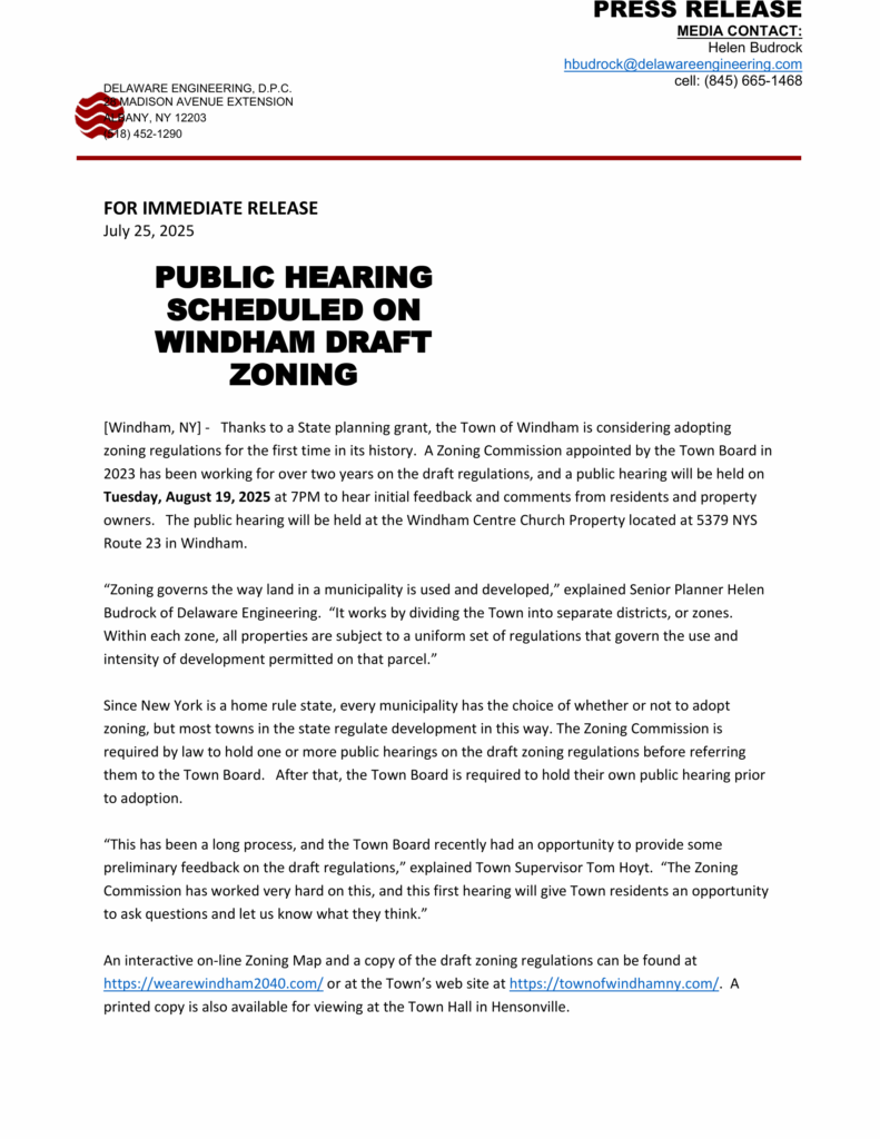 Press Release for Public Hearing on Windham Draft Zoning